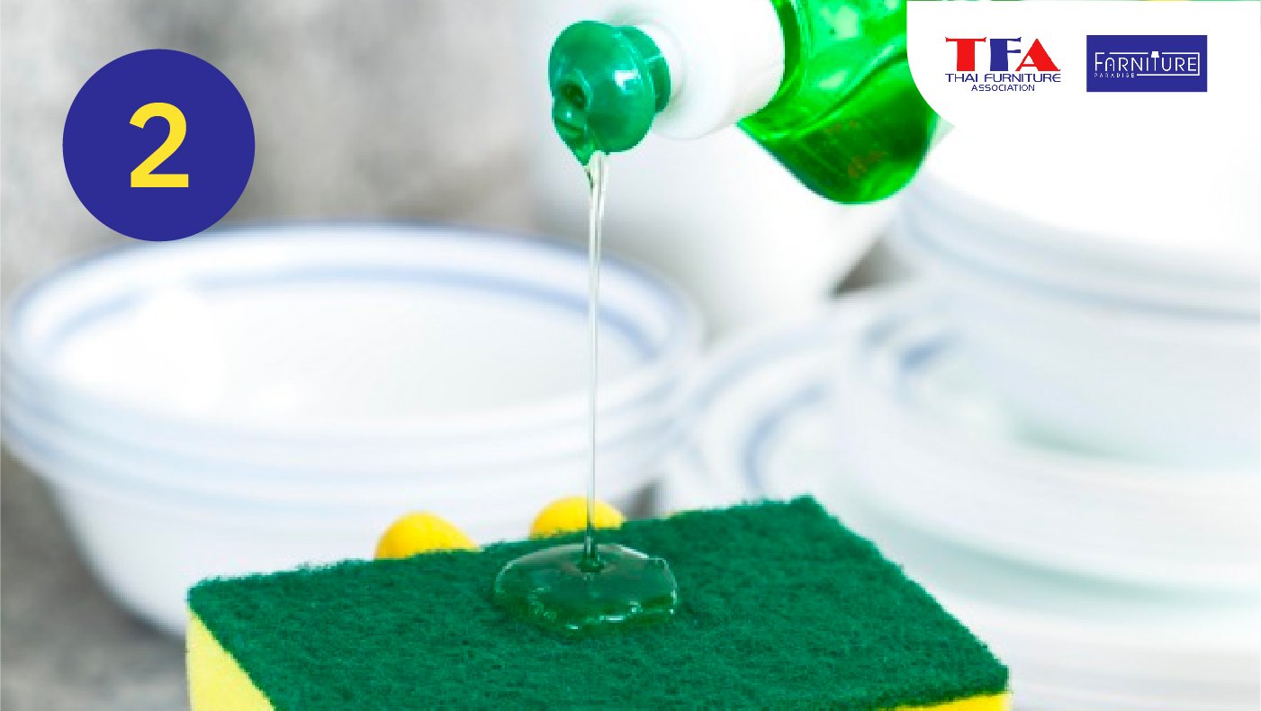เทสบู่เหลว 3 ช้อนโต๊ะลงในขวดสเปรย์ ตามด้วยน้ำเปล่า ปิดฝาให้สนิท แล้วเขย่าผสมให้เข้ากันดี จากนั้นก็นำไปใช้เช็ดกระจกได้เลย